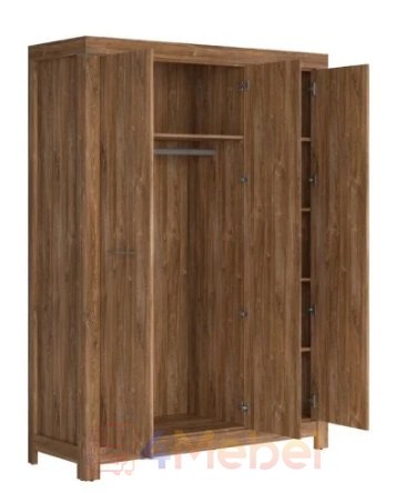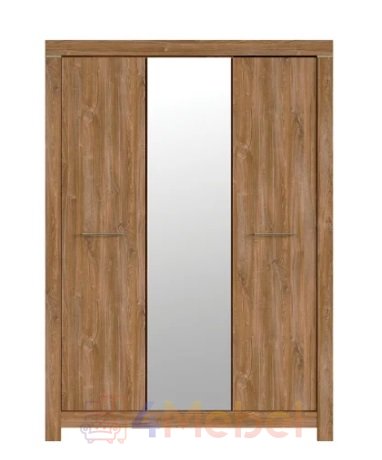 Шкаф SZF2D1L/22/17 Герман – трехдверный шкаф с платяным отделом со штангой и отделением с полками. Корпус и фасады изготавливаются из ДСП, с элементами МДФ. Выполняется в красивом цвете "Дуб стирлинг" с хорошо видимой структурой дерева. Является одним из элементов серии Герман. Характерной особенностью модели являются удлиненные ручки стального цвета и металлические вставки.