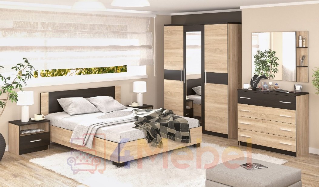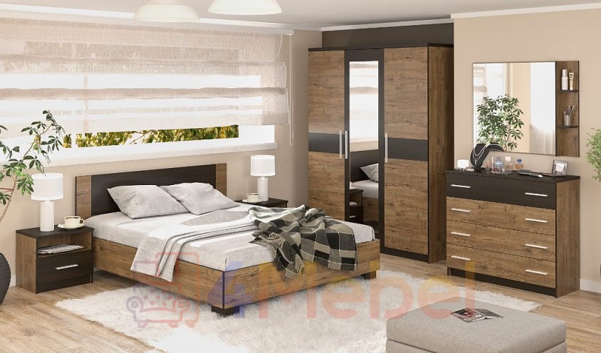 Спальня Вероника – один с вариантов комплектации спальни Вероника фабрики Мебель Серивис. Стильная и современная спальня изготавливается в двух комбинациях на выбор: венге темный / дуб април или венге темный / дуб самоа.