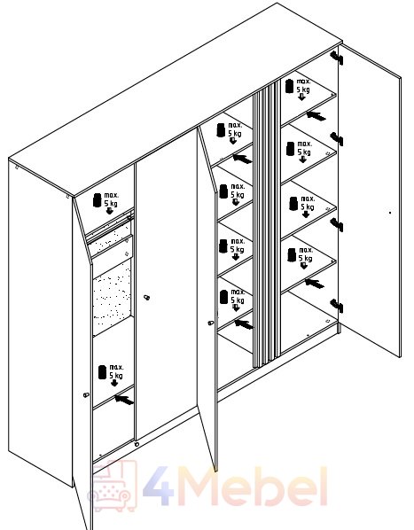 Шкаф 4Д Тео – является одним из элементов модульной системы "Тео" фабрики Світ меблів. Серия мебели "Тео" от "Мир мебели" – это стильная и практичная модульная мебельная коллекция. Корпус и фасады изготовлены из качественного ДСП, а два доступных цветных варианта – дуб артизан и артвуд светлый со вставками в цвете антрацит – придают мебели особый шарм. Стильные ножки облегчают процесс уборки, а ящики с направляющими полного выдвижения придают функциональность. Мебель "Тео" – это идеальный выбор для вашего интерьера.
